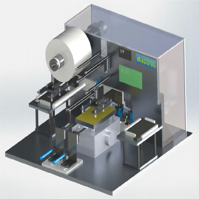 (4)正、負極料盒配有吸塵裝置,可吸走極片上掉落的灰塵,統一收集在機器下方的粉塵收集袋中,粉塵收集袋設計成可拆式,方便粉塵處理。