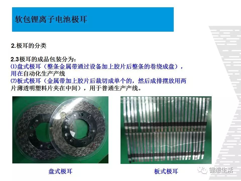 2.3極耳的成品包裝分為: