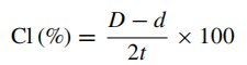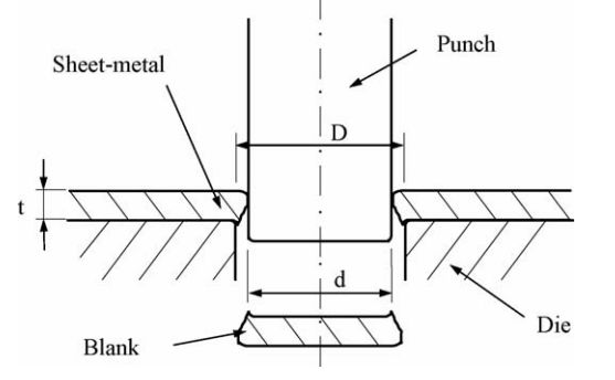 其中,CL為沖切間隙,D和d是上下模頭的尺寸,t是板材厚度,如圖2所示。而考慮到模具的磨損時(shí),有效沖切間隙Cle定義為公式(2):